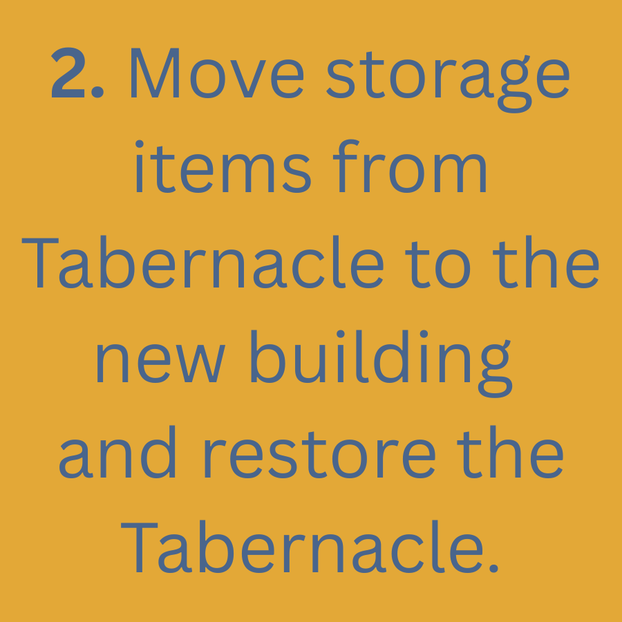 The Plan: The Tabernacle, one of our most iconic and historic buildings, once was our primary space for worship and large gatherings, was later used for recreation, and now serves as overflow storage. We plan to restore it into a sacred, purpose-built space for worship that seats 400+ people, creating a setting that fosters reverence, focus, and community. Planned renovations include: