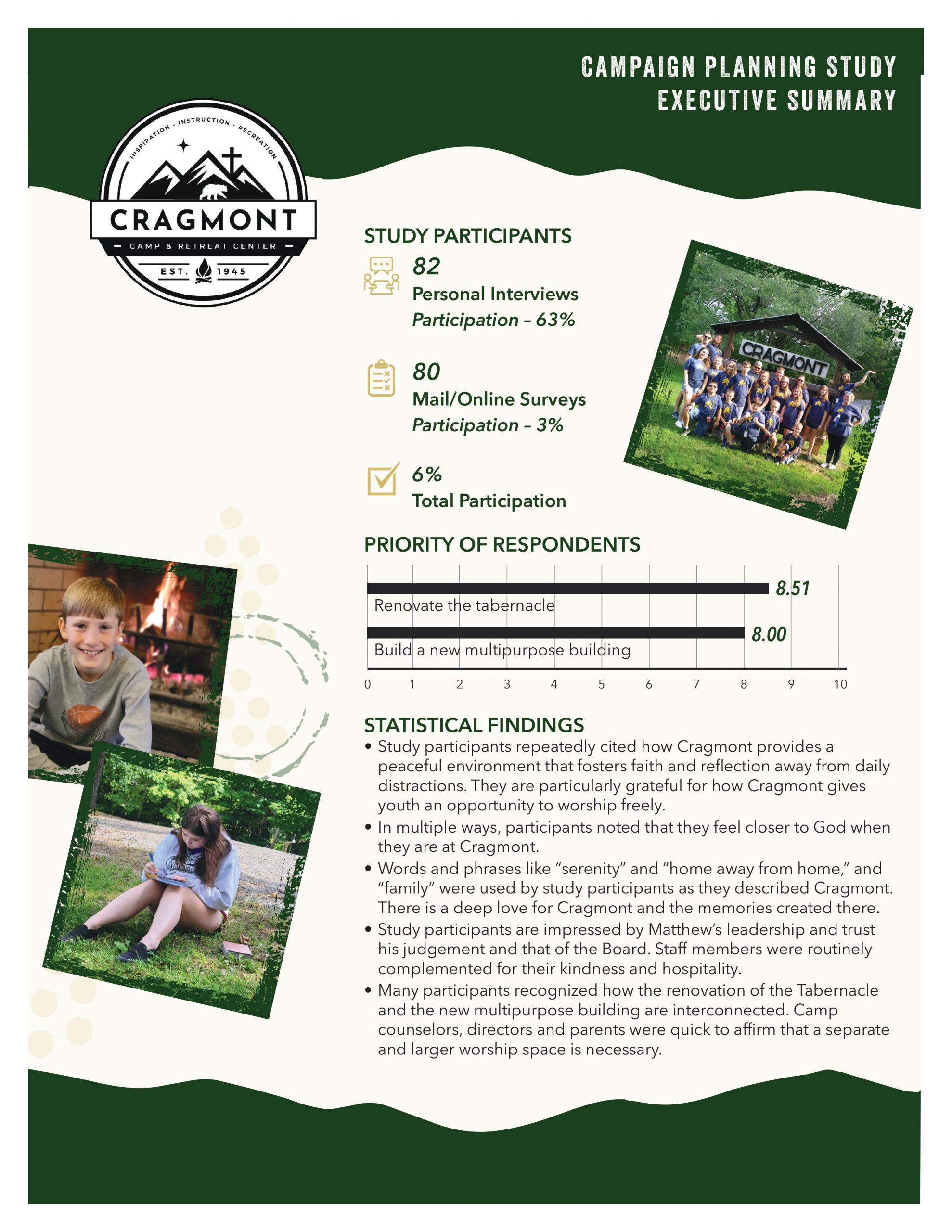 As we began envisioning Cragmont’s future and recognizing the importance of shared vision, we conducted a planning study to listen and learn from those who care most about Cragmont. We invited friends, supporters, and community members to share their thoughts, hopes, and ideas for the future of this ministry. Their honest feedback helped guide our next steps and shaped the vision you’ll see reflected in the information below.